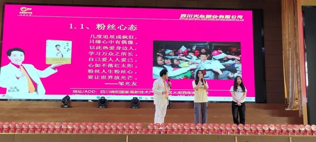 鄒光友董事長以粉絲如何讓人生更精彩?怎樣打造自己的金飯碗?從成功心態(tài)萬事成、辭官下海賣紅薯、管理模式共分享、人生精彩粉絲路四大板塊講述自己32年來,用一根紅薯加500元創(chuàng)立并發(fā)展光友薯業(yè)的傳奇故事。