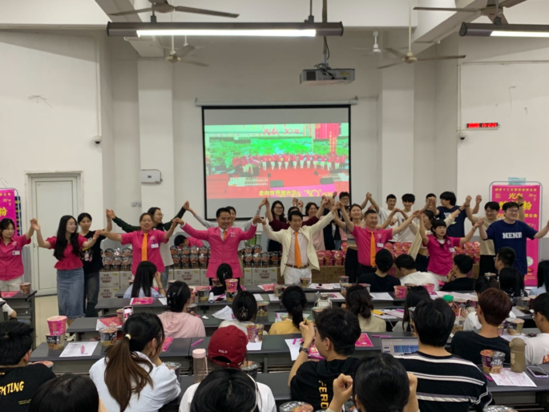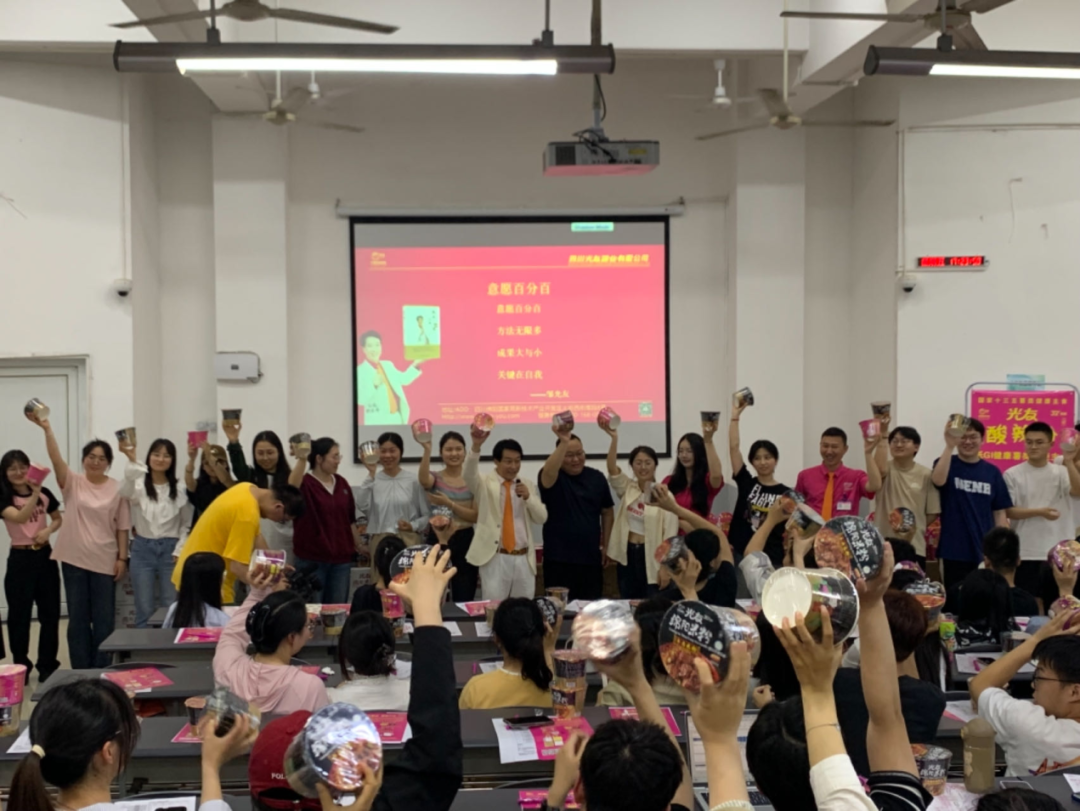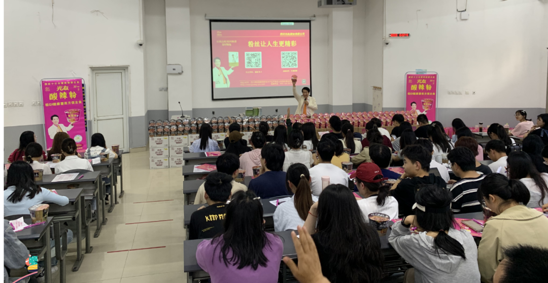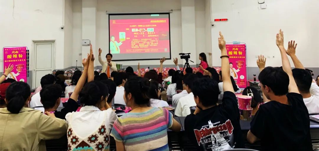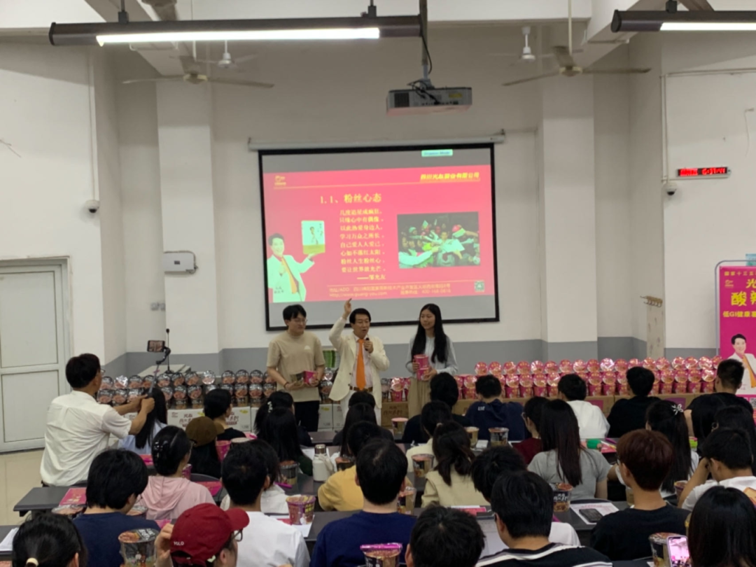 演講過程中,光友薯業(yè)董事長(zhǎng)強(qiáng)調(diào),他與光友薯業(yè)始終不忘初心,從未停止過改變紅薯命運(yùn)的偉大愿景,光友薯業(yè)在32年間,共進(jìn)行了六次具有歷史突破性的粉絲革命,先后斬獲國(guó)內(nèi)外多項(xiàng)榮譽(yù)與專利,并在不久前全新發(fā)明了全球領(lǐng)先的低GI健康薯類主食——光友綿陽(yáng)米粉和光友酸辣粉,科學(xué)健康和方便美味完美相融,該類粉絲一經(jīng)亮相,便立即受到了業(yè)內(nèi)外的認(rèn)可與追捧?,F(xiàn)場(chǎng)同學(xué)食指大動(dòng),也對(duì)光友這個(gè)國(guó)貨老品牌有了全新的認(rèn)知。