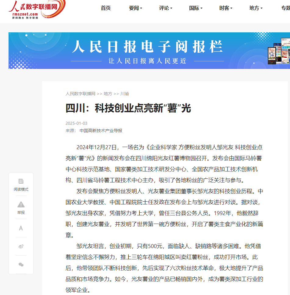 轉載人民數(shù)字聯(lián)播網(wǎng)——四川:科技創(chuàng)業(yè)點亮新“薯”光