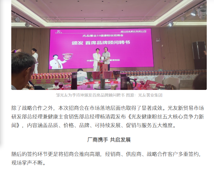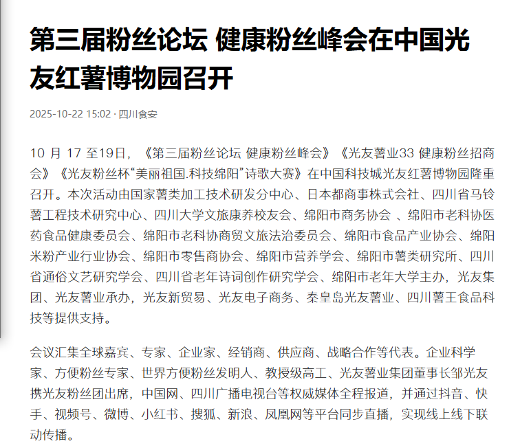 轉(zhuǎn)載四川食安今日頭條-第三屆粉絲論壇 健康粉絲峰會(huì)在中國(guó)光友紅薯博物園召開(kāi)