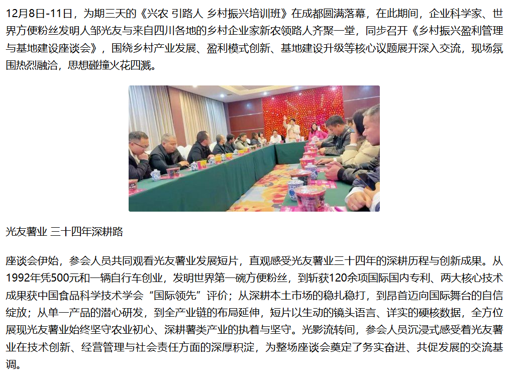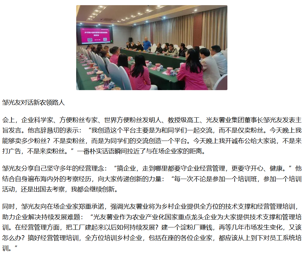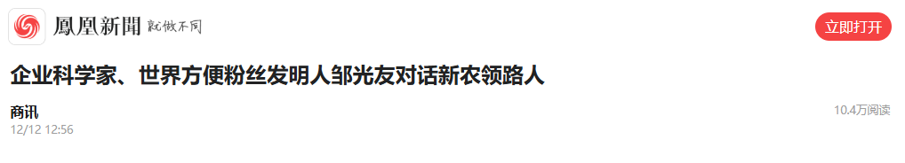轉(zhuǎn)載鳳凰網(wǎng) -企業(yè)科學(xué)家、世界方便粉絲發(fā)明人鄒光友對(duì)話新農(nóng)領(lǐng)路人