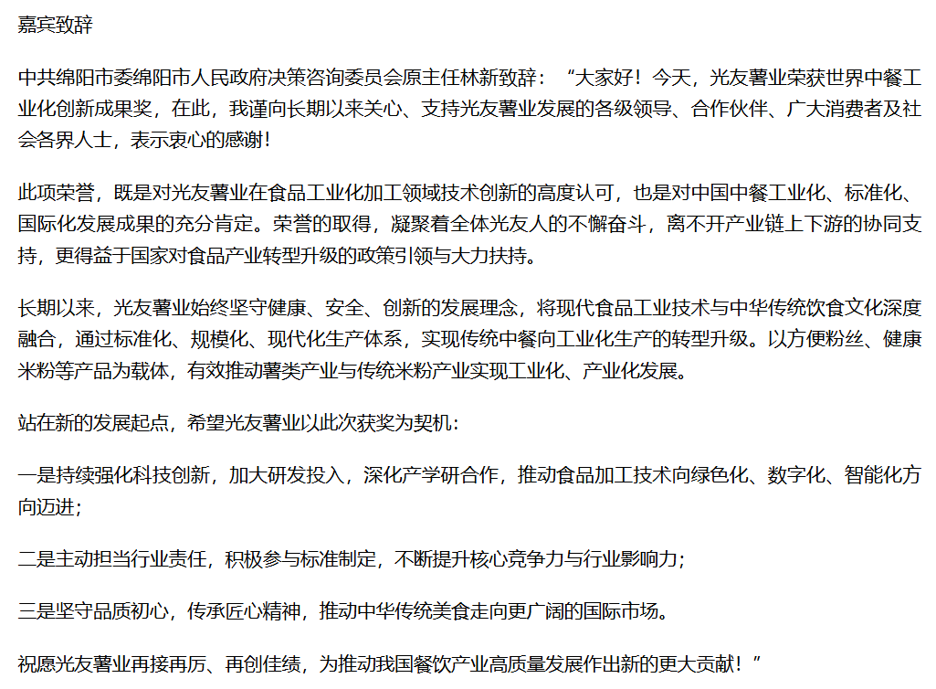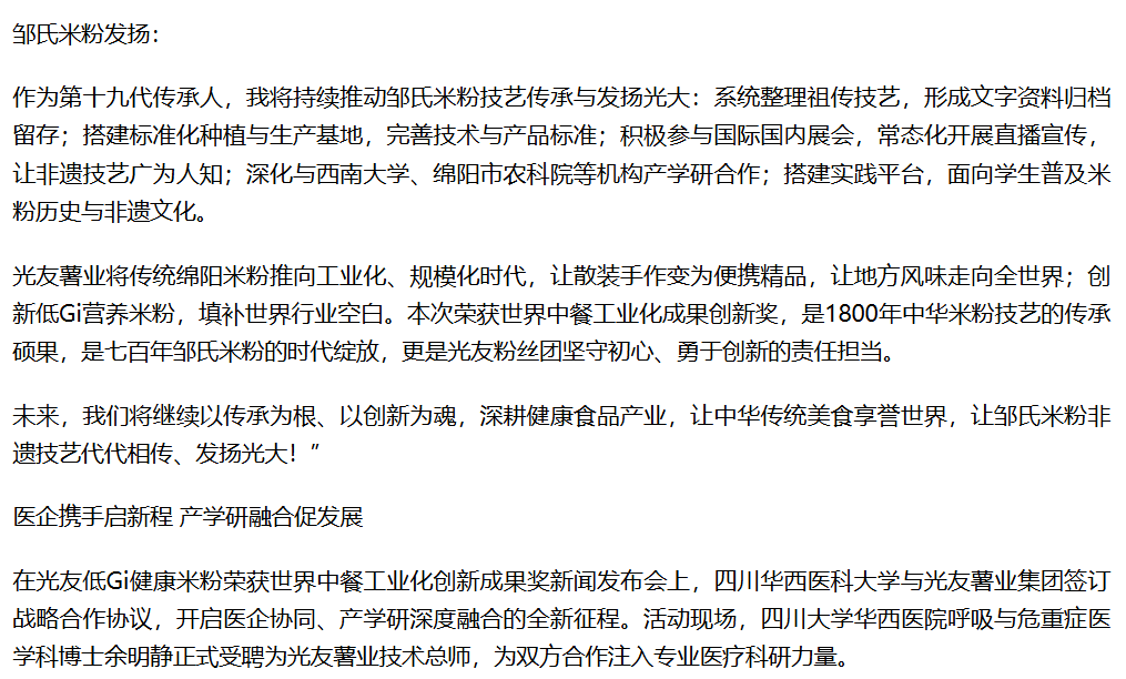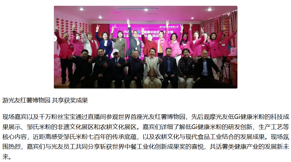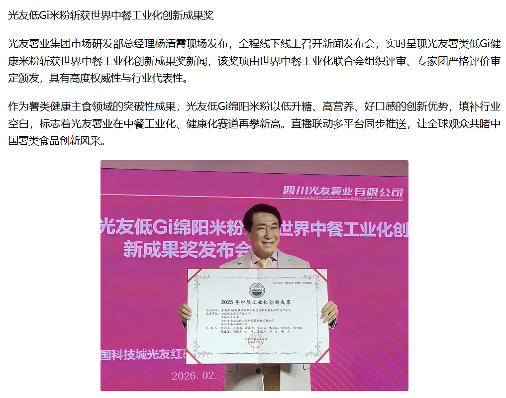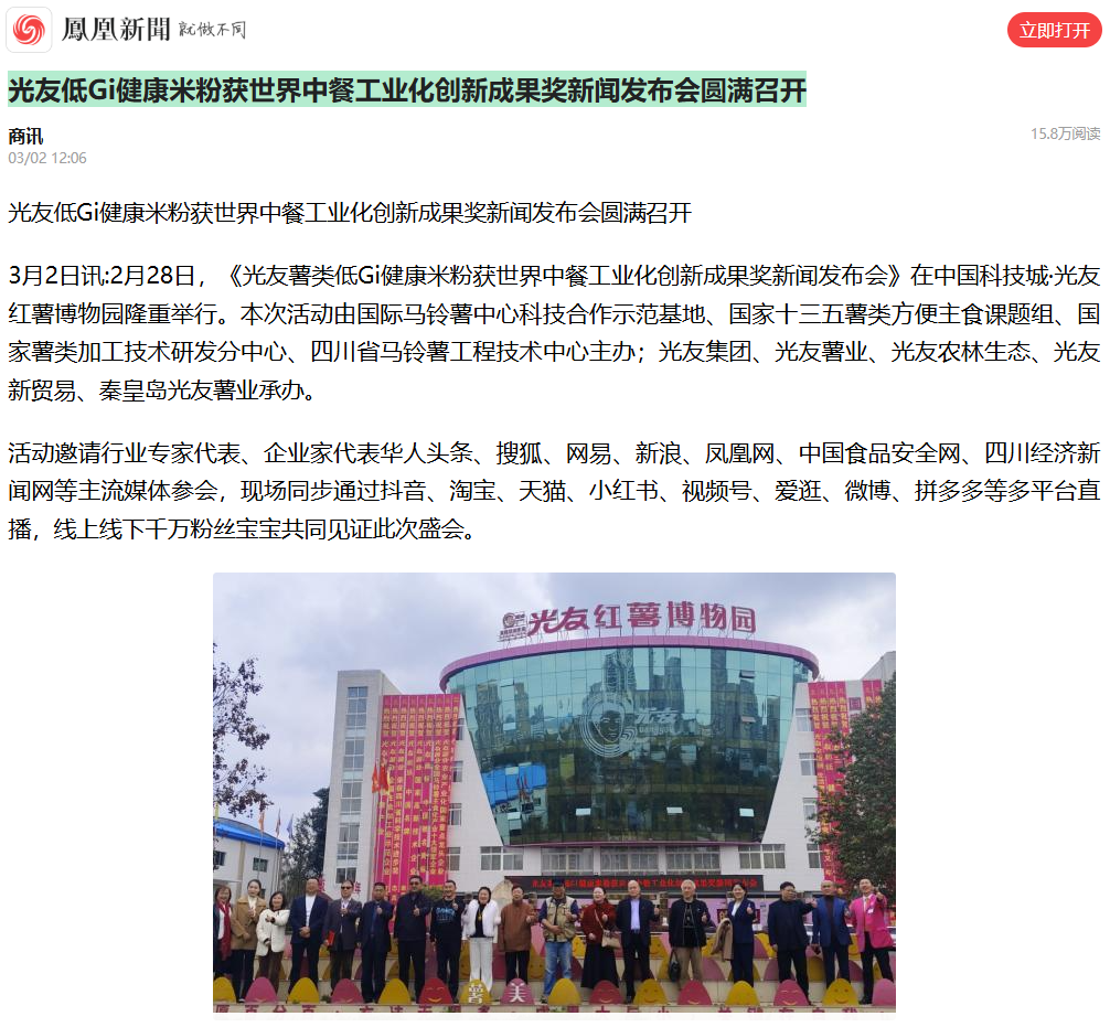 轉(zhuǎn)載鳳凰網(wǎng):光友低Gi健康米粉獲世界中餐工業(yè)化創(chuàng)新成果獎(jiǎng)新聞發(fā)布會(huì)圓滿召開