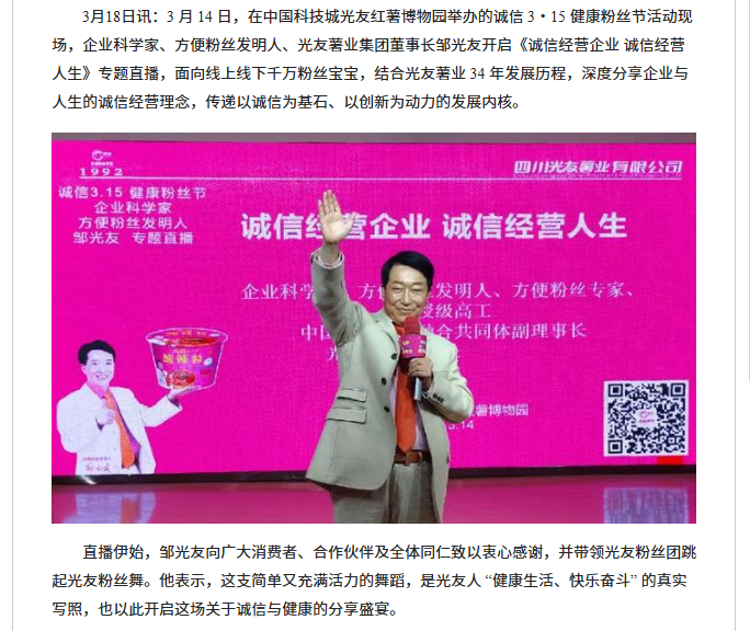 轉(zhuǎn)載四川經(jīng)濟(jì)新聞網(wǎng) 鄒光友專題直播《誠信經(jīng)營企業(yè) 誠信經(jīng)營人生》