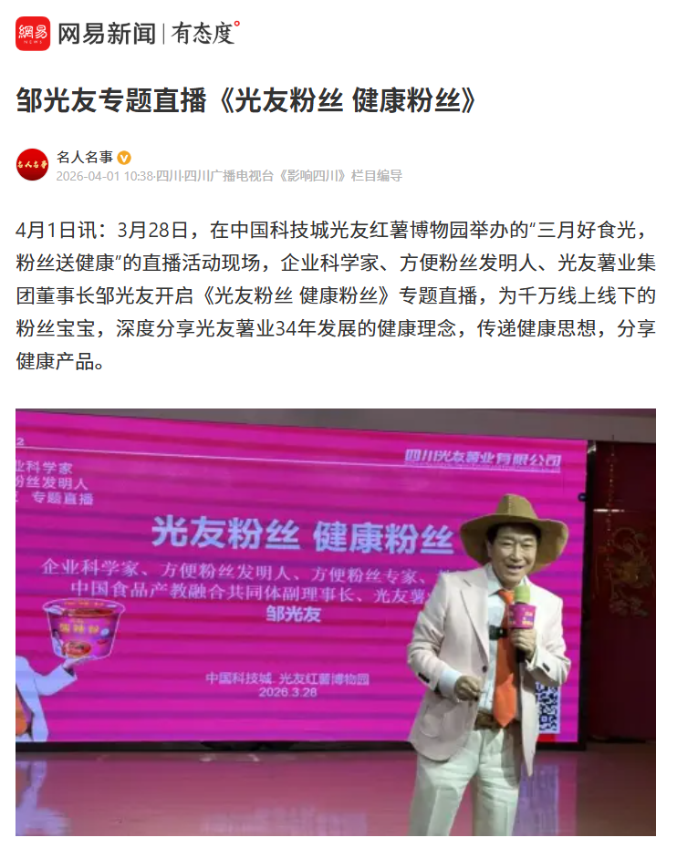 轉(zhuǎn)載網(wǎng)易新聞鄒光友專題直播《光友粉絲 健康粉絲》