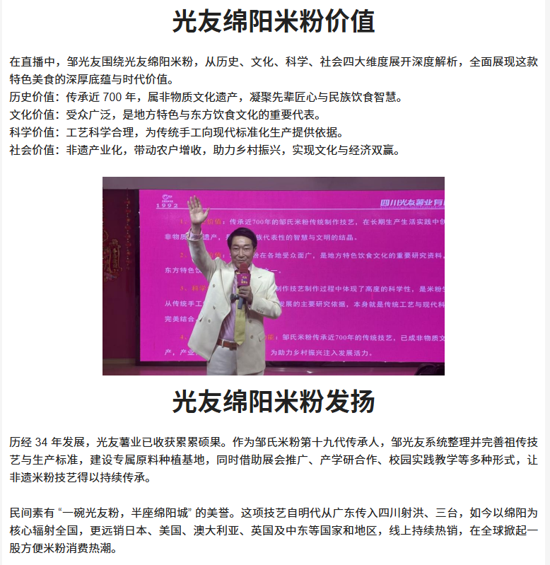 轉(zhuǎn)載四川商界網(wǎng) 鄒光友專題直播《光友綿陽米粉 傳承中國好味道》