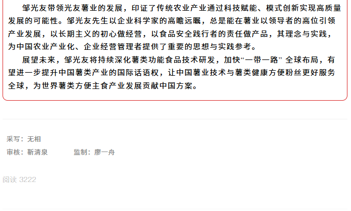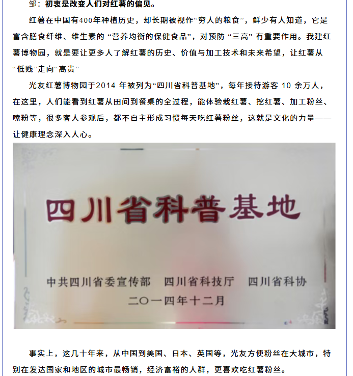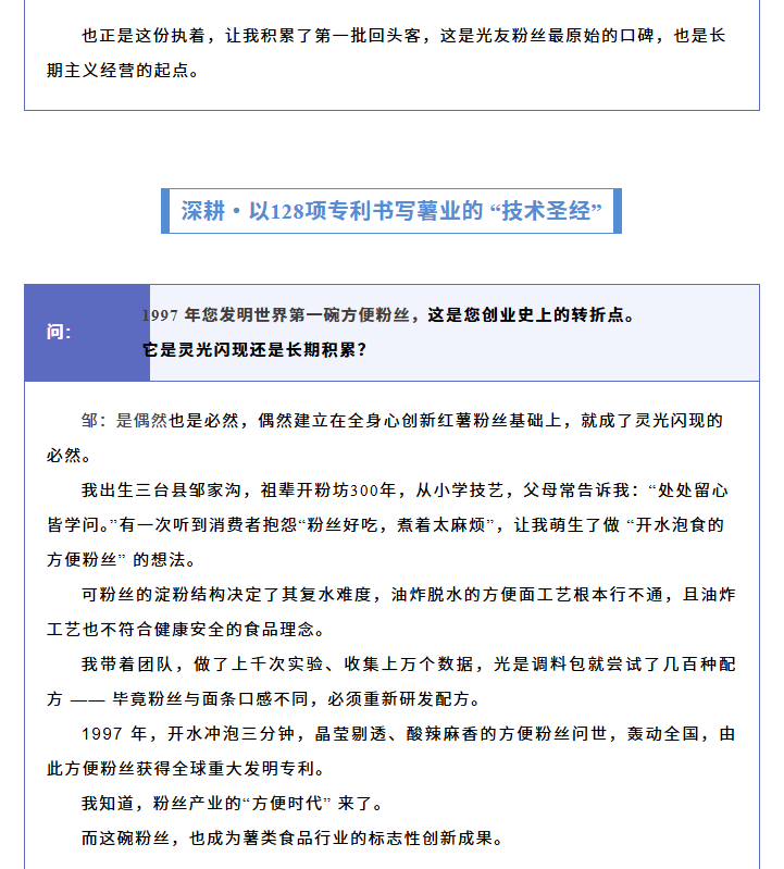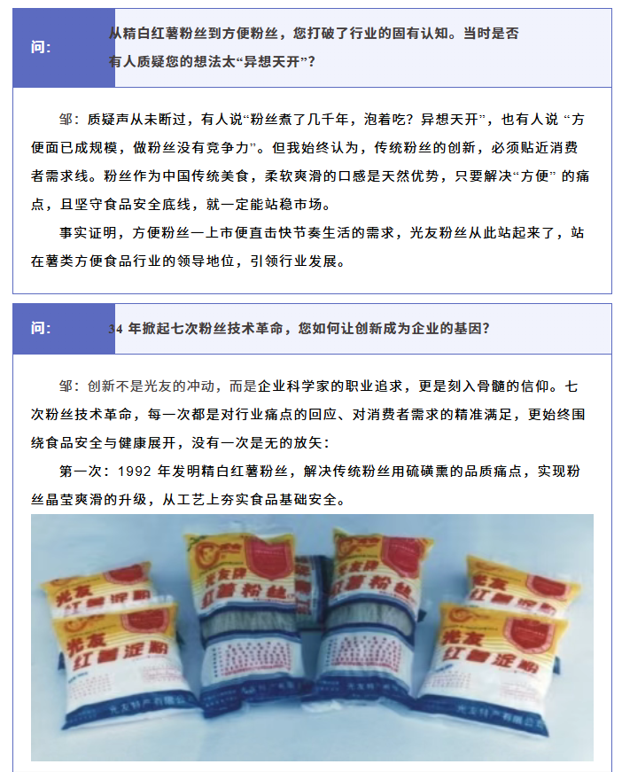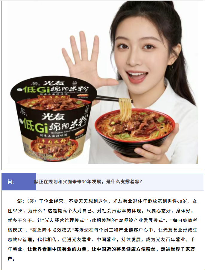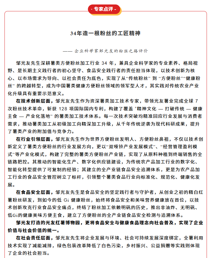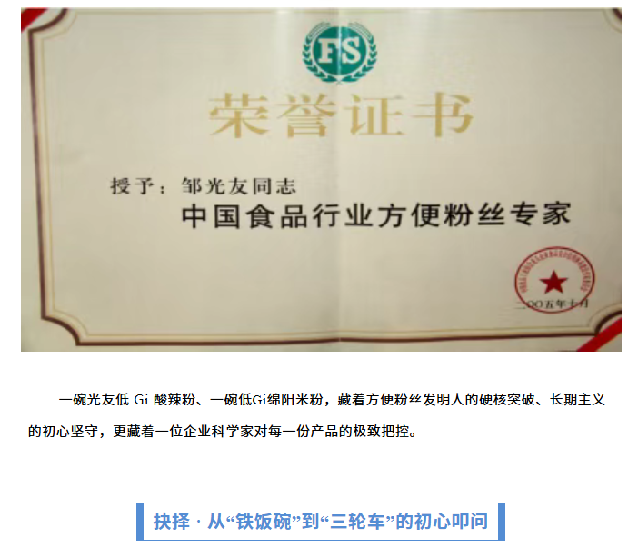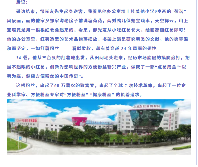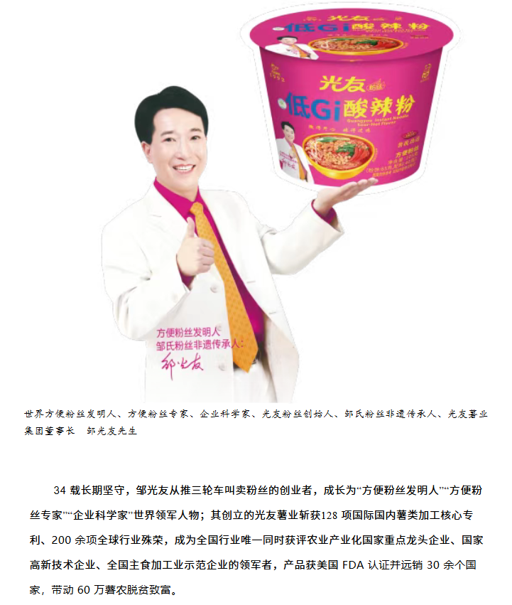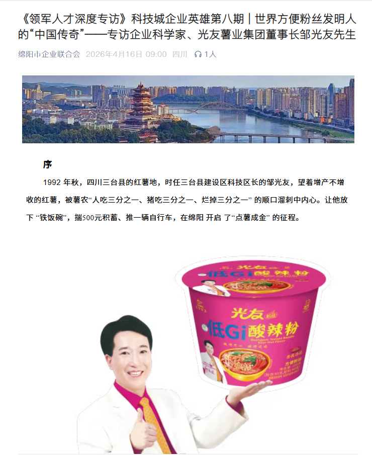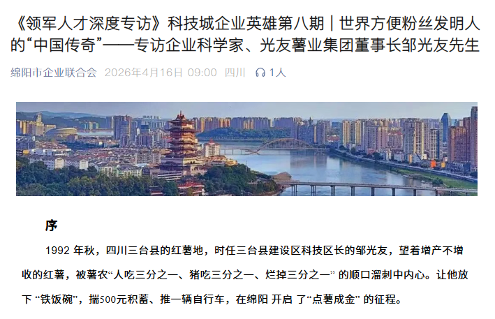 轉(zhuǎn)載綿陽市企業(yè)聯(lián)合會 《領(lǐng)軍人才深度專訪》科技城企業(yè)英雄第八期 | 世界方便粉絲發(fā)明人的“中國傳奇”——專訪企業(yè)科學(xué)家、光友薯業(yè)集團董事長鄒光友先生
